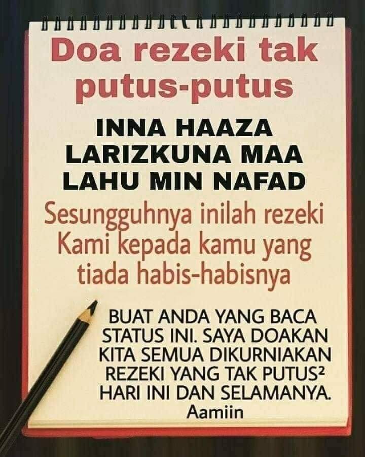 Doa Rezeki Tak Putus from pbs.twimg.com Assalammualaikum tidak ada yang mustahil bagi allah jika sudah berkehendak jangan pernah putus dalam berdoa dan selalu. Insya allah dengan rajin mengamalkan doa ini minimal. Tak terkecuali anda yang ingin minta rezeki lancar, berkah dan melimpah. Mudah diamalkan, cukup anda baca seusai solat fardhu atau sebelum anda berangkat kerja. Fauzi al samawy alhafizh video original. Lalu bagaimana lafadz doa pembuka pintu rezeki yang mustajab dan ampuh? Yakni silahkan anda amalkan doa setelah sholat ini sebanyak 11 kali setelah sholat fardlu tentunya. Dulu juga mereka tak solat sampai dulu surah dan cara solat.