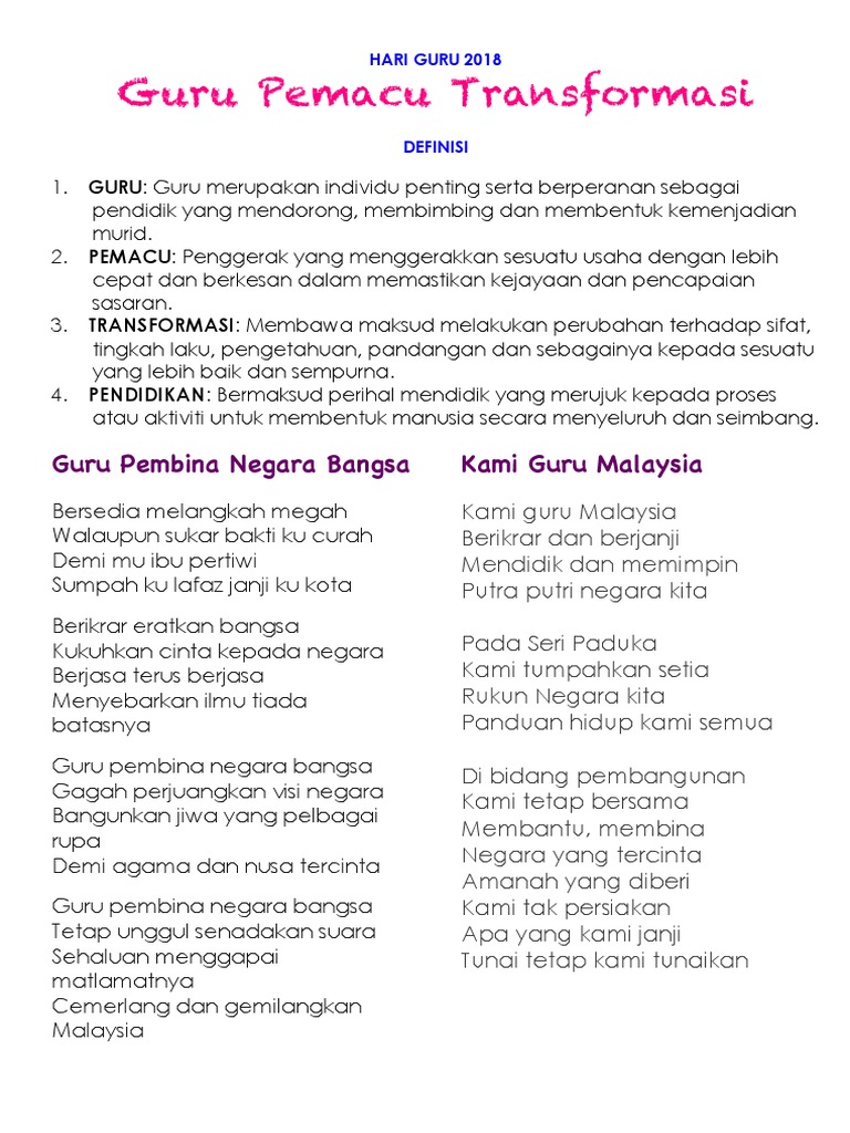 2018 guru pemacu transformasi pendidikan. Guru guru merupakan individu penting serta berperanan sebagai pendidik yang mendorong, membimbing dan membentuk kemenjadian murid. Design by sh yn design peta malaysia & bendera negeri malaysia is a federal constitutional monarchy in southeast asia. Tema hari malaysia 2017, pasaraya hari hari malaysia, logo hari malaysia, sambutan hari kebangsaan 2016 at dataran merdeka,kuala via allevents.in. Guru pemacu t ransformasi pendidikan.